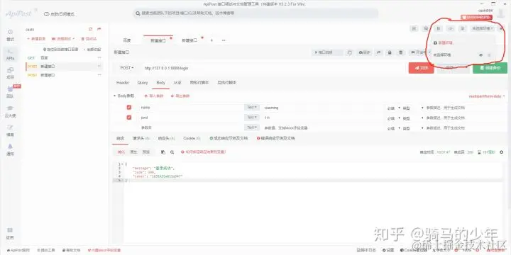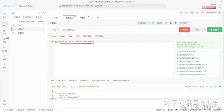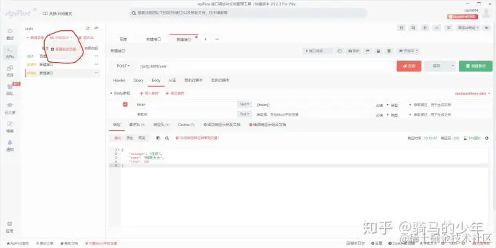 先打开apipost,进行登录接口的编写,然后获取token的值。