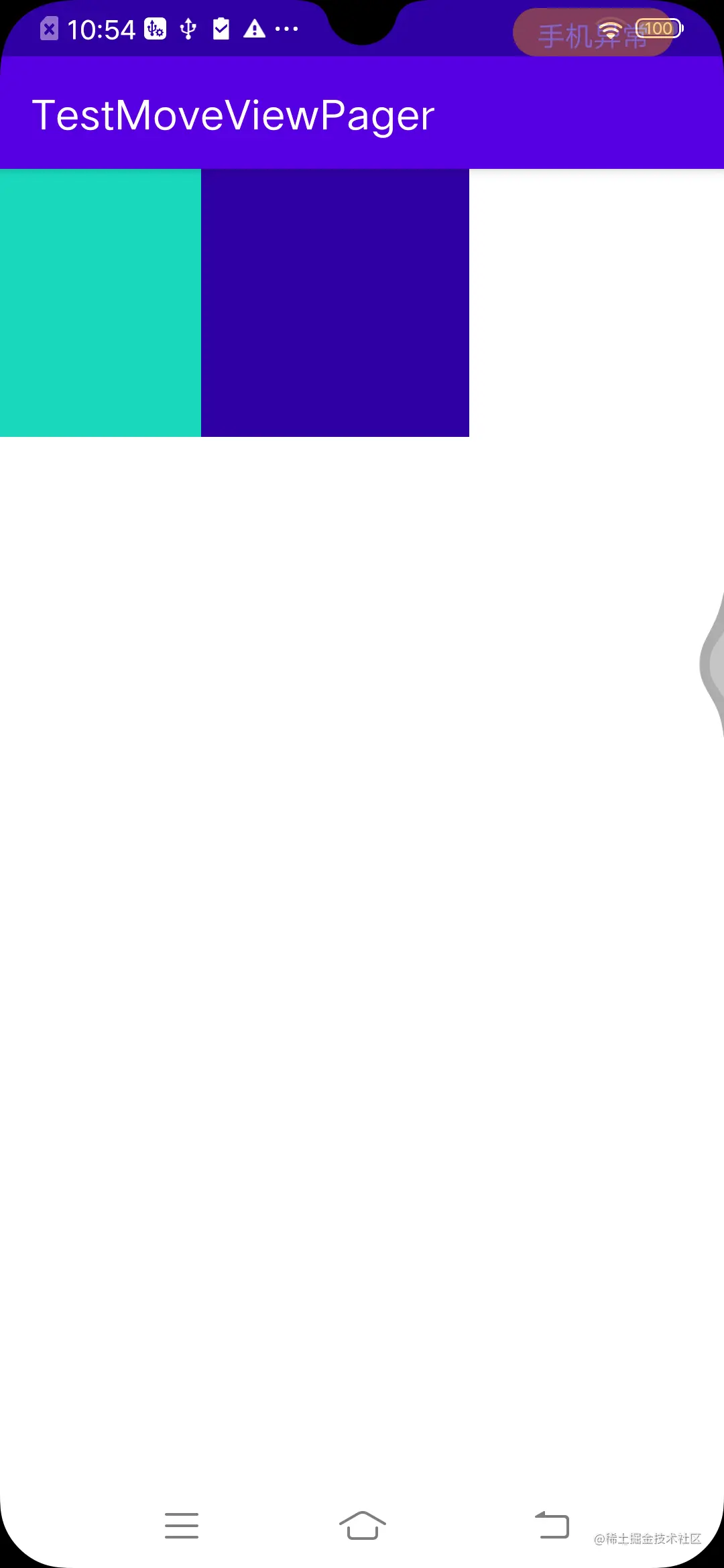 可以很明显看出来 这个效果 和我们预期中的很不一样。 原因就是: 父view 也就是linearlayout这个viewgroup的 layout 是根据 measure的结果 来做的,我们这里 直接修改了子view的layout 而没有修改measure的逻辑,导致父view 还是根据measure的结果 去layout 自然得出来的结果 就很不符合预期了。 实际上: