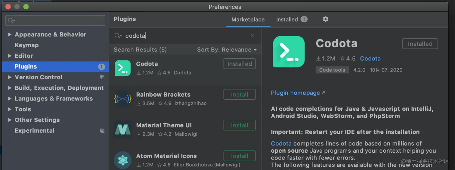 Preferences-->Plugins-->Marketplace 按名称搜索安装即可。