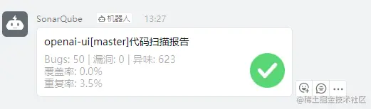 完成上述步骤,就可以将sonarqube扫描结果,推送到钉钉群了