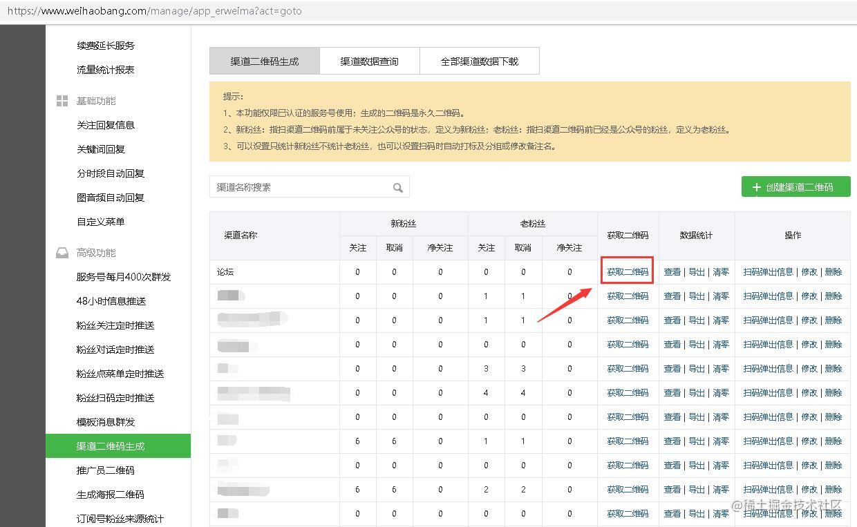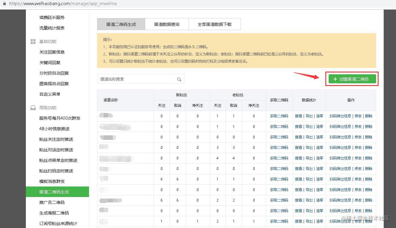 1、微号帮平台:创建渠道二维码