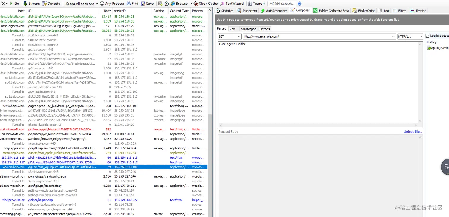 Fiddler主界面按Ctrl+R弹出Fiddler ScriptEditor,在static function Main(){}内添加FiddlerObject.UI.lvSessions.AddBoundColumn("serverIP",120,"X-HostIP"); 保存并重启Fiddler,测试时确保请求的ServiceIP为阿里云的IP:47.107..