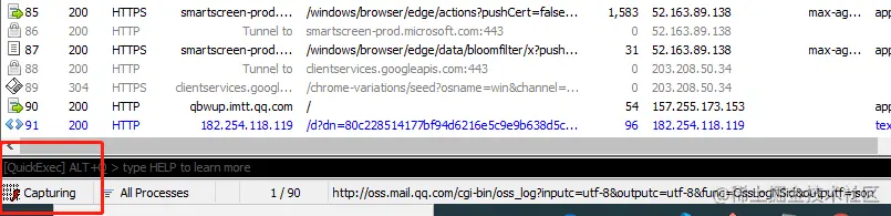 5.点击左下角的Capturing 可以抓包电脑端的请求