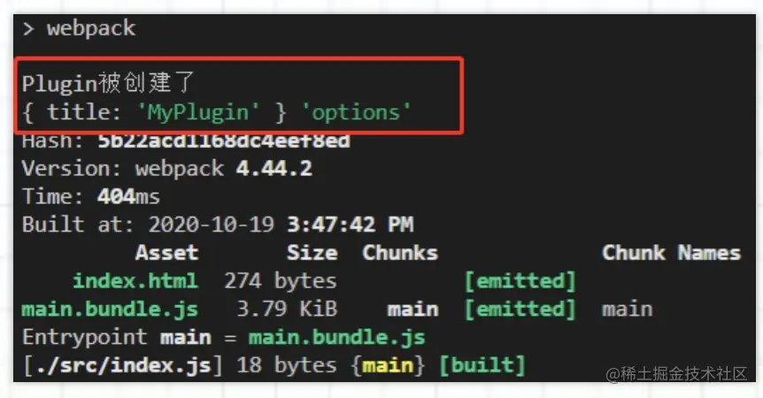 这样我们的插件就在webpack中生效了;这时有些童鞋可能会想起来,我们在使用HtmlWebpackPlugin或者CleanWebpackPlugin等一些官方插件时,可以通过实例化插件传入参数;那么这里我们是否也能通过这种方式给我们的插件传参呢?