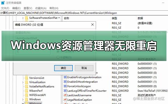 3.找到“AutoRestartShell”的项,将值修改为“1”即可;