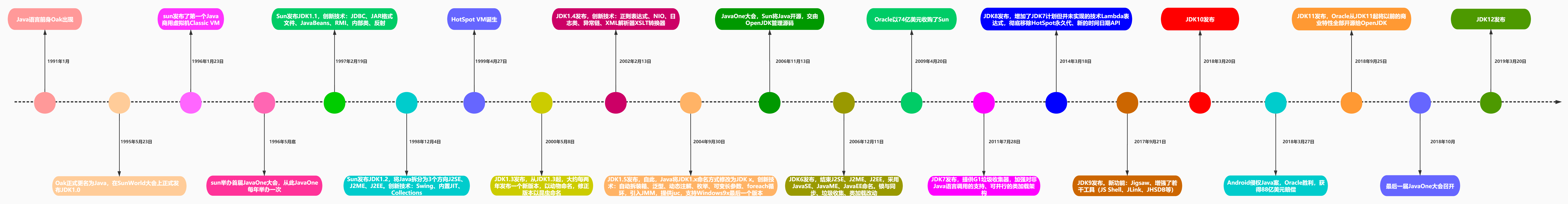 先放一张图片,是一张Java发展史的综合图片,可以帮助梳理总结此节内容