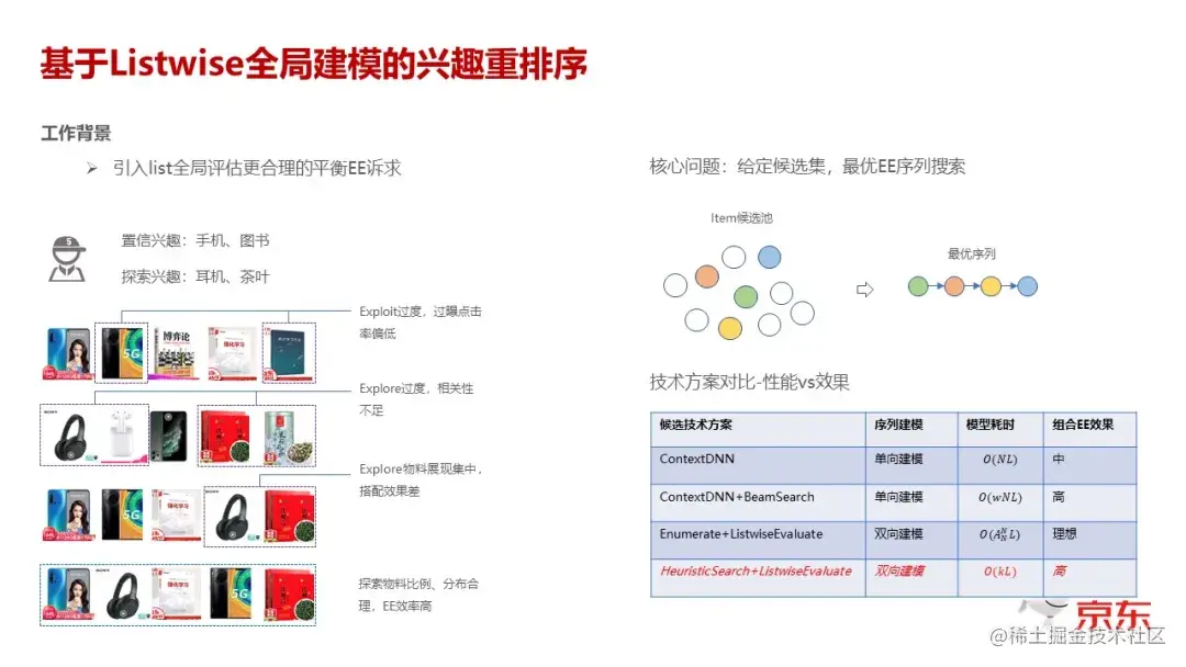 前面讲了 Explore,就是我们把用户不感兴趣的商品,没有明确表达感兴趣的商品探索出来,但是探索出来的东西和用户已经表达出感兴趣的东西怎么做合理的组合?怎么呈现给用户最终的那个合理的队列?这是排序里要解决的另一个问题。