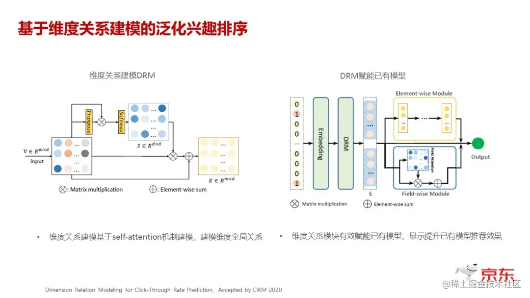 上图就是我们构建出来 DRM 模块。左边是实现的过程,可以看到,其实过程并不复杂。上面是矩阵,这个矩阵其实就是一个 self attention 的过程,下面只是一个这个支链的边,能够保证模型的迭代、收敛会更快,所以这是一个特别简单的通用组件。