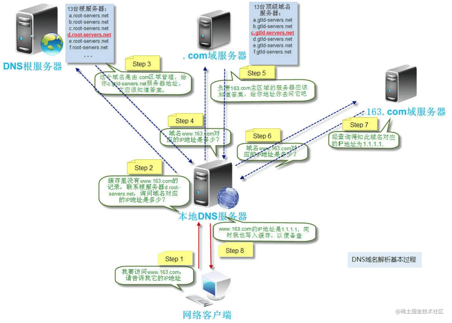 - 重复第6步,知道找到正确的记录(注意重复的步骤全部都是由ISP发起的,而不是客户端)