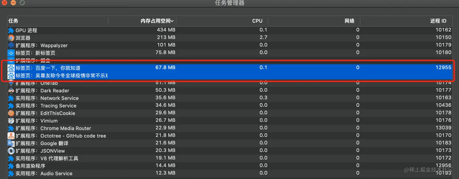 关于浏览器多进程架构可以看下这篇文章(@shuangyu todo),默认情况下Chrome中每个标签页对应一个渲染进程,但也有一些特殊情况。