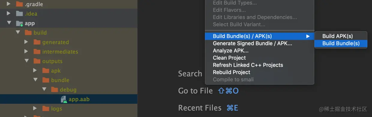 显然这不是Google想要的结果,所以为了解决这个问题,Google推出了一种新的应用市场上传格式(.aab)Android App Bundle。你可以使用Android Studio提供的功能构建出一个aab文件。