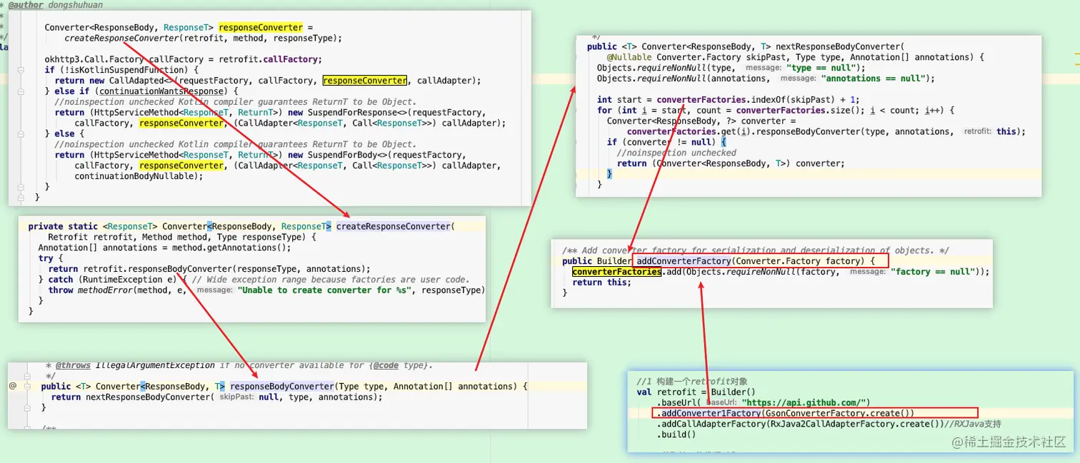 - 追踪源码,responseConverter来自于HttpServiceMethod中CallAdapted创建之前