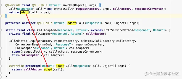 loadServiceMethod(method)返回了一个CallAdapted对象之后,就开始执行invoke()这个方法