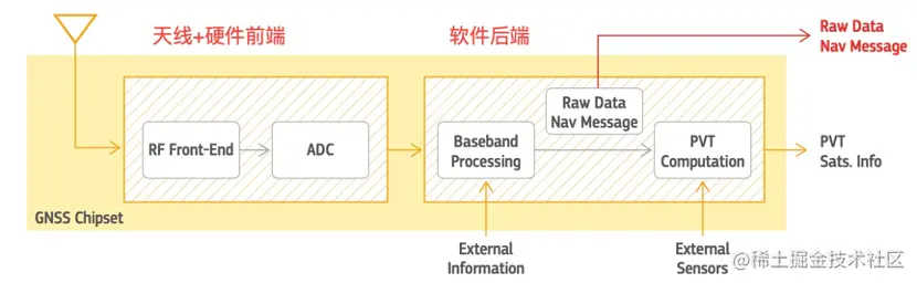 PVT包括Position,Velocity和Time。这一步是真正进行定位的步骤,是利用基带解码获得的报文,提取出时间戳、星历等信息,代入公式进行计算,然后将计算结果输出给应用程序。
