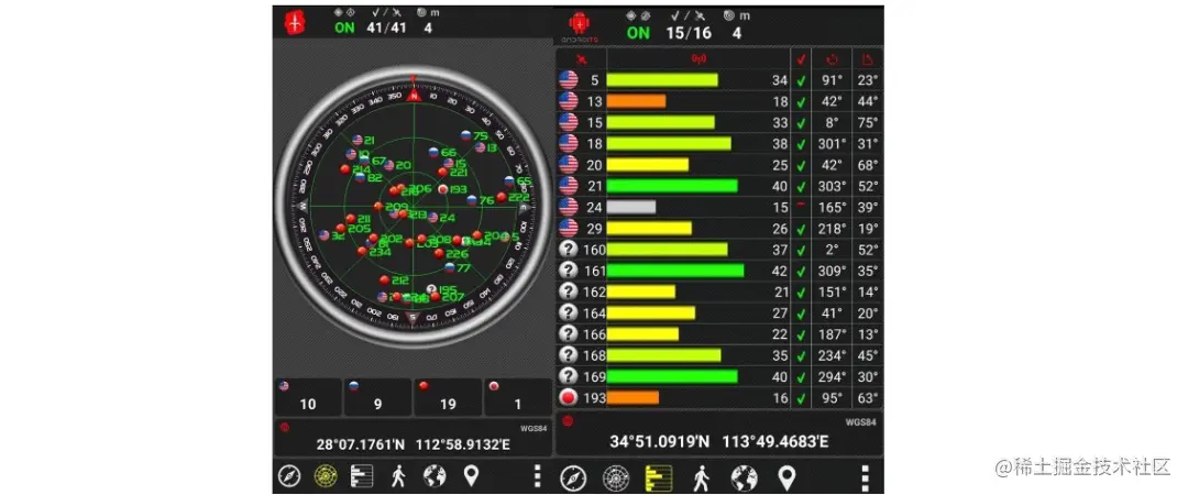 有了这些信息,通过一些App就可以实时看到当前的卫星状态,例如Androits gps test, GPStest等
