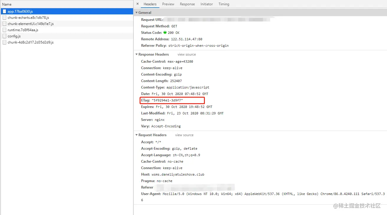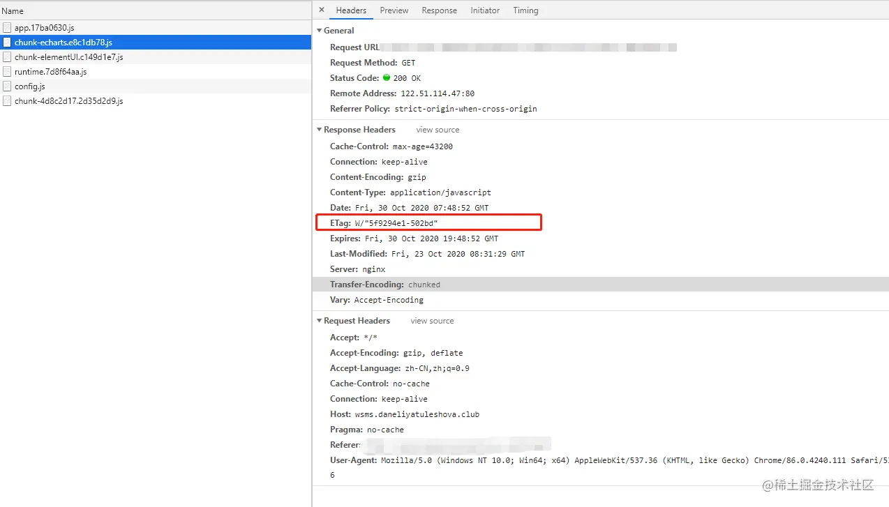 ETag: "5f9294e1-502bd"为加载静态压缩包