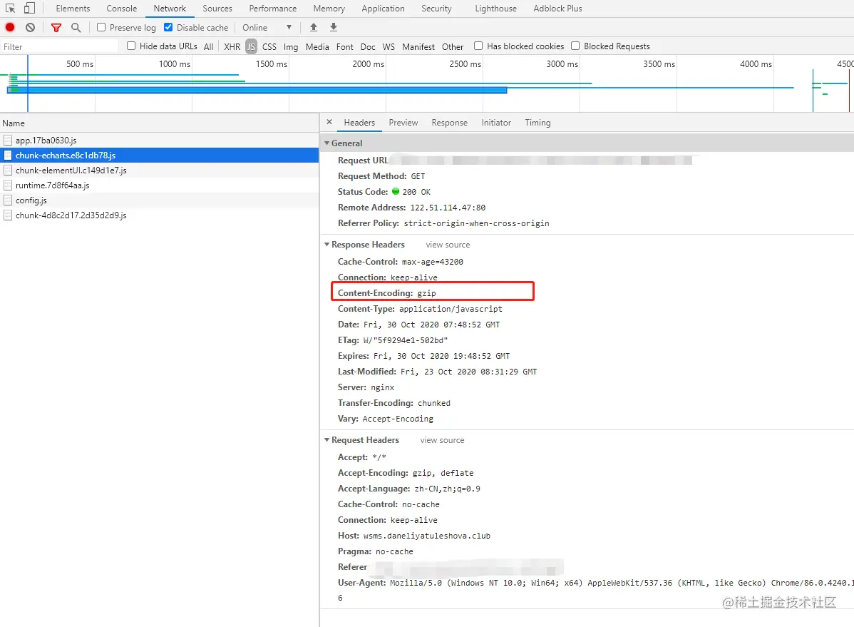 注意:当nginx开启gzip压缩的时候,无论前端打包出来的文件是否压缩,网站加载到的js文件都是经过nginx实时压缩过的 。