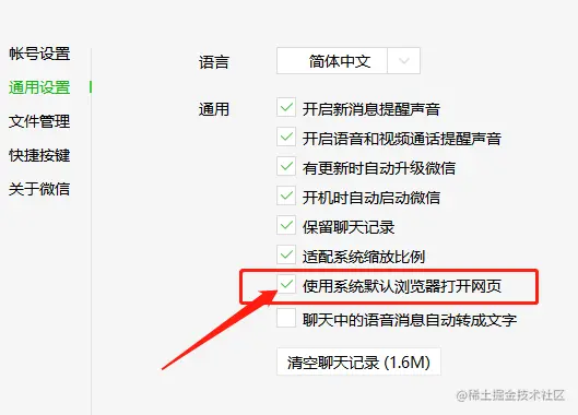 - 第二步,将电脑微信端的设置为使用系统默认浏览器打开网页,这样你才能用浏览器打开公众号的历史文章列表