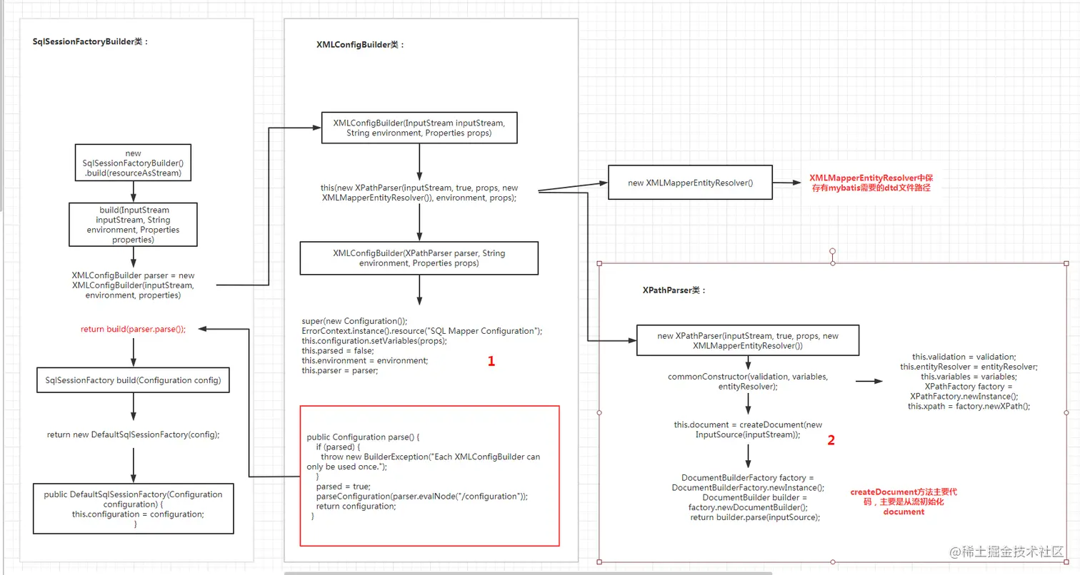 SqlSessionFactory sqlMapper = new SqlSessionFactoryBuilder().build(resourceAsStream);这行代码代码主要做了哪些事呢,代码执行流程如下图: