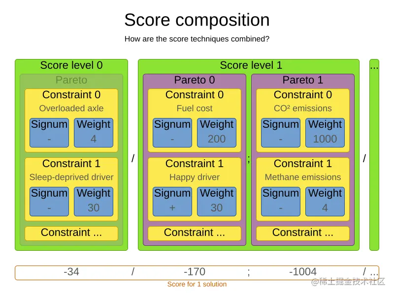 - 分数级别(硬、软…):对一组约束类型进行优先级排序