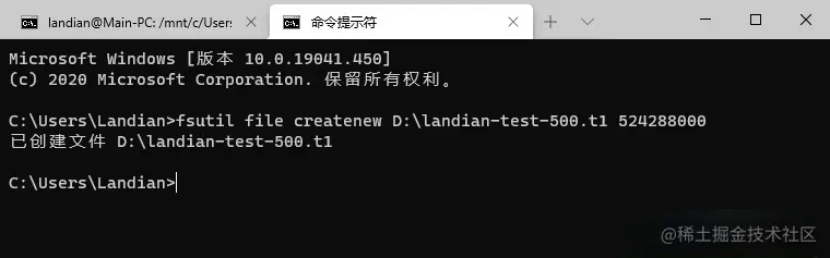 如果你已经在Windows 10上启用WSL/WSL2并安装Linux发行版,则可以使用dd命令来创建指定大小的空文件。