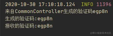 接着启动Springboot,在前端输入验证码,查看后台的输出内容,可以看到LoginController成功的接收到来自另一个Controller传来的验证码了,匹配成功!