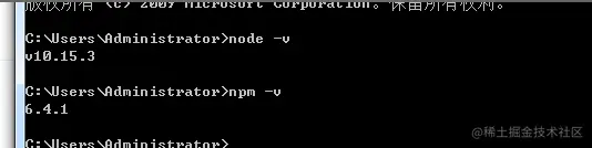 安装后,在cmd中输入node -v npm -v 出现版本号说明配置成功