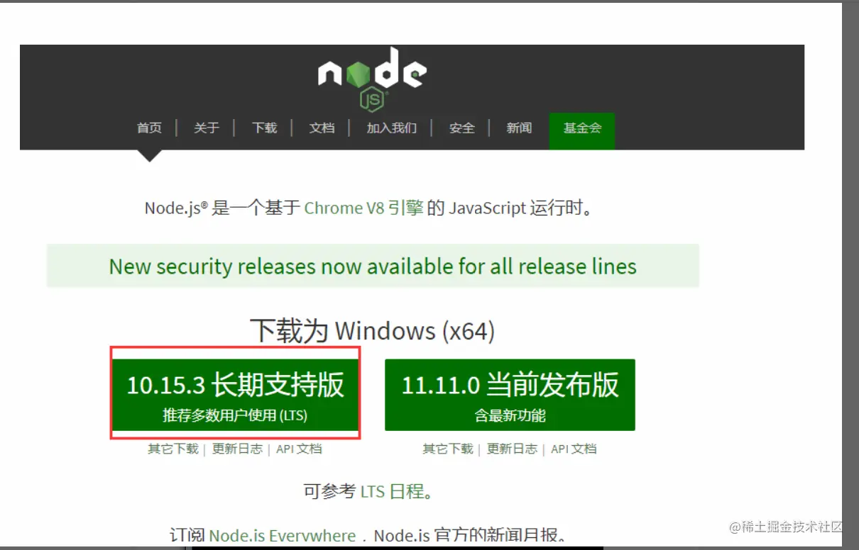 在 nodejs官网下载最新版稳定版的node.js安装,自带了npm工具 (我截图时间是18年上半年,后期node 会持续更新,版本不一定以我的为尊) node官网:nodejs.org/zh-cn/