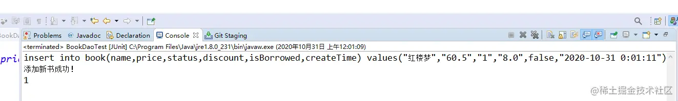 insert into book(name,price,status,discount,isBorrowed,createTime) values("红楼梦","60.5","1","8.0",false,"2020-10-31 0:01:11");