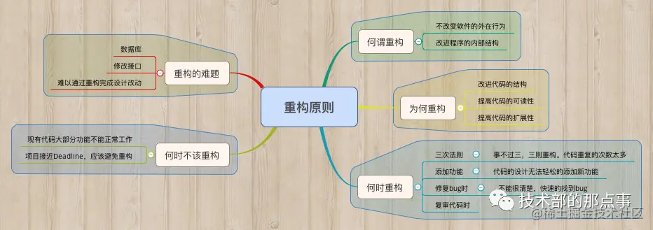为何重构(why):改进代码的结构,提高代码的可读性,提高代码的扩展性,降低维护成本。