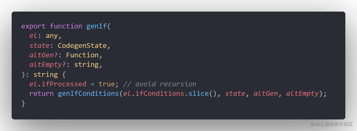 核心就是递归调用此函数,每次都从元素的ifCondition数组中从头依次取出元素,然后生成字符串。