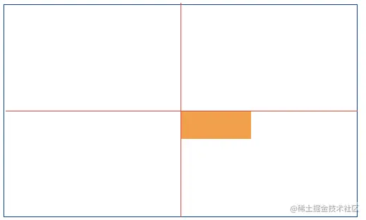 父级相对定位,子级绝对定位,而top,left这两个属性的如果给百分比,那么这个百分比则是相对于父级的宽高来进行计算的,如果只给定这两个值,则子级的右上角会和父级的中心点对齐,得到下图: