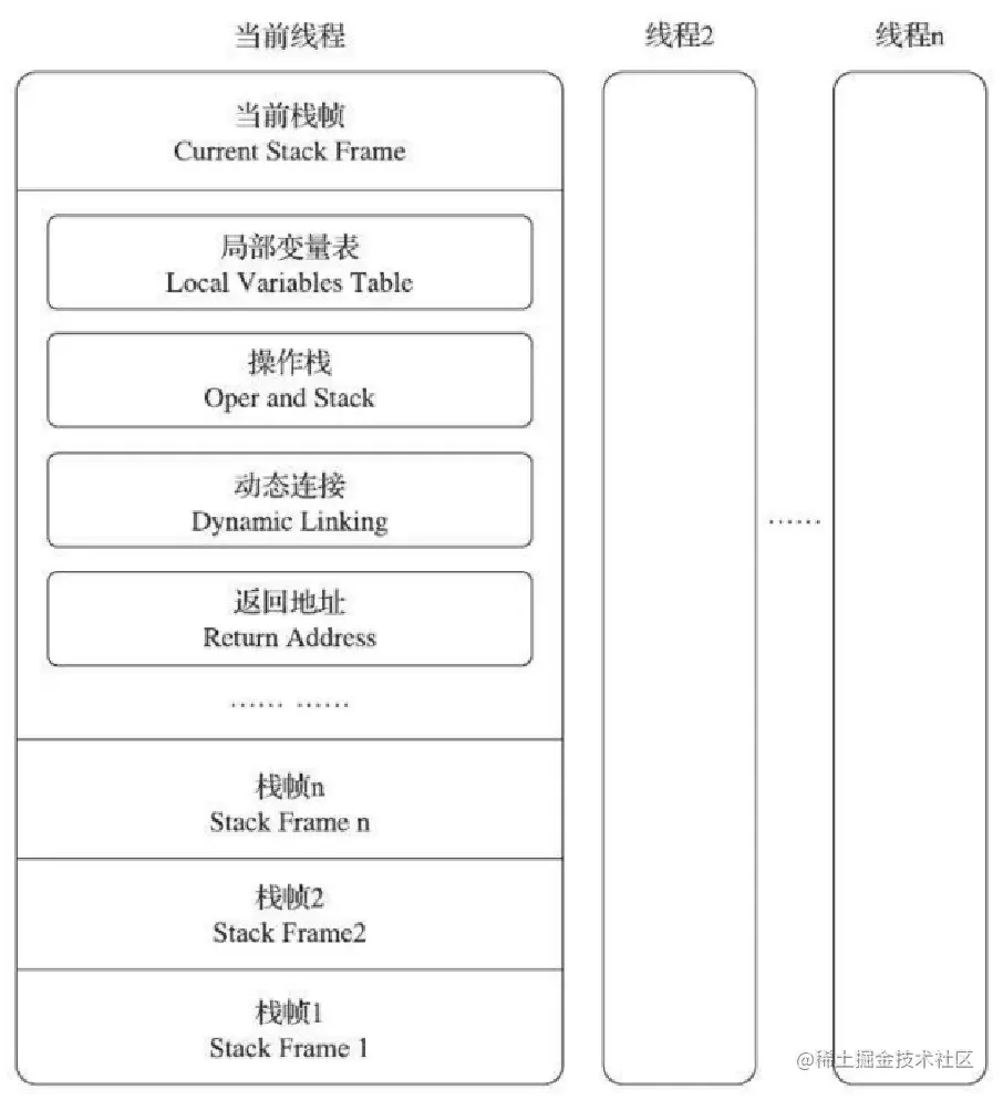 《Java虚拟机规范》允许虚拟机实现增加一些规范里没有描述的信息到栈帧之中,例如与调试、性能收集相关的信息,这部分信息完全取决于具体的虚拟机实现,这里不再详述。在讨论概念时,一般会把动态连接、方法返回地址与其他附加信息全部归为一类,称为栈帧信息。