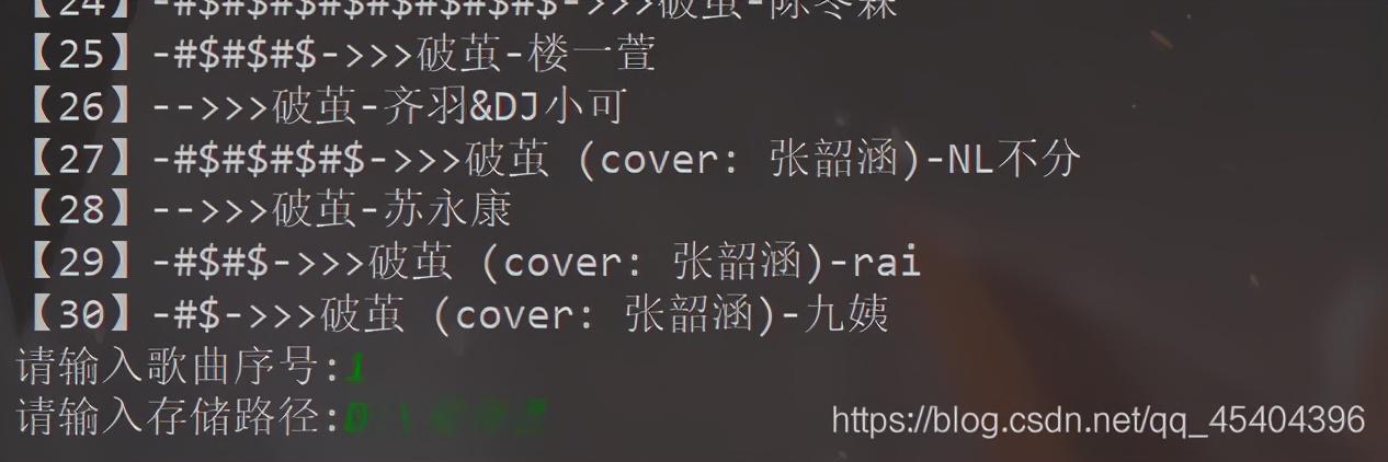 其中,requests模块用于请求得到相应的数据(这里是得到json数据),json模块用于对得到的json数据进行处理(将json数据转换成字典,主要使用json.loads()方法),urllib.request(使用其urlretrieve()方法,用于下载音乐),urllib.parse(使用其quote()方法,用于对输入的字符串进行编码)。