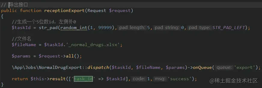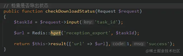 解决方案是:在用户请求我的导出接口的时候,我生成一个task_id,并返回给前端。随后把导出任务和task_id推入队列里面,前端收到task_id后显示正在导出。然后在队列的任务类里面,因为他导出成功后,会返回下载链接,这时候就把下载链接存到接受到的task_id作为key的缓存中。然后前端收到task_id后轮询一个检查是否导出成功的接口,这个接口就是拿task_id去缓存里面查有没有值(值就是导出成功后存入到缓存的下载链接),如果有即导出成功了。前端轮询接口知道收到文件路径,如果收到则下载,显示导出完成给用户,未收到则还是显示正在导出。