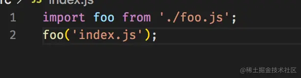 => 然后再次进入了index.js(进入这个文件的原因同上面),执行foo('index.js');