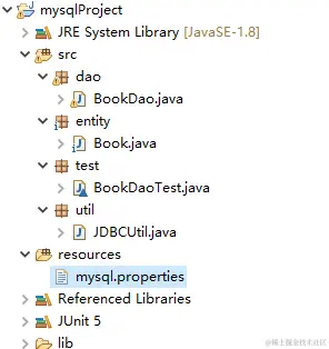 2.1首先在项目的资源文件夹resources中读取配置文件mysql.properties到程序的 java.util.Properties中去。