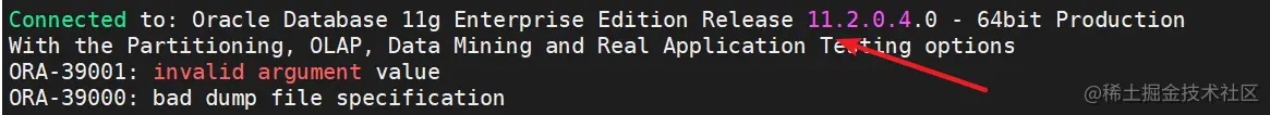 如果导出 dmp 的 Oracle 数据库与要导入的 Oracle 数据库存在大版本方面的差异,就会提示版本不兼容异常。