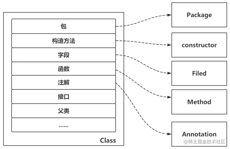 首先我们看下一个类对象里面包含了很多的东西,我们可以通过反射拿到这些东西。