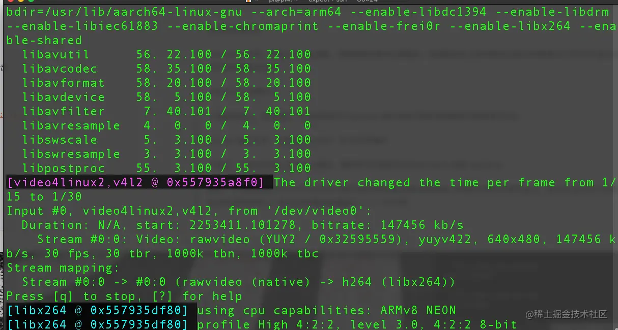 使用如下命令行可以获取摄像头视频流,并指定格式和视频大小推送给本地nginx