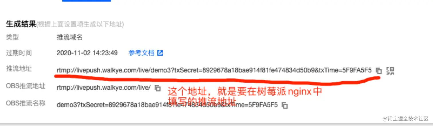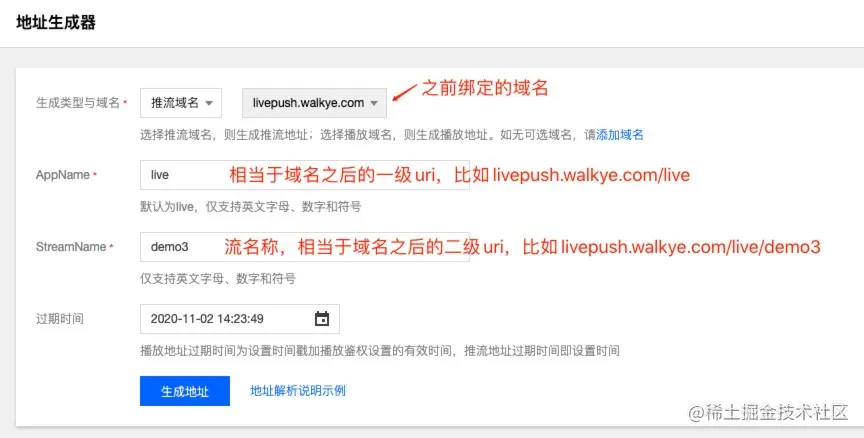 生成最终的推流地址