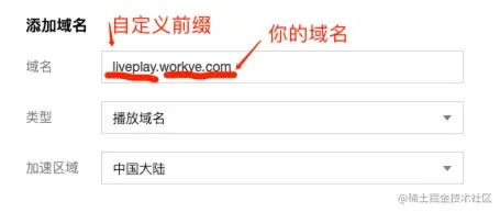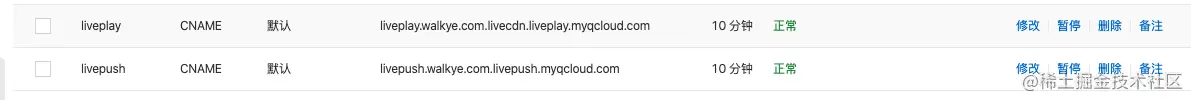 我的域名在阿里云,我在对应的域名下增加了两条CNAME解析,目标地址就是上一步红框中给出的真实推流域名