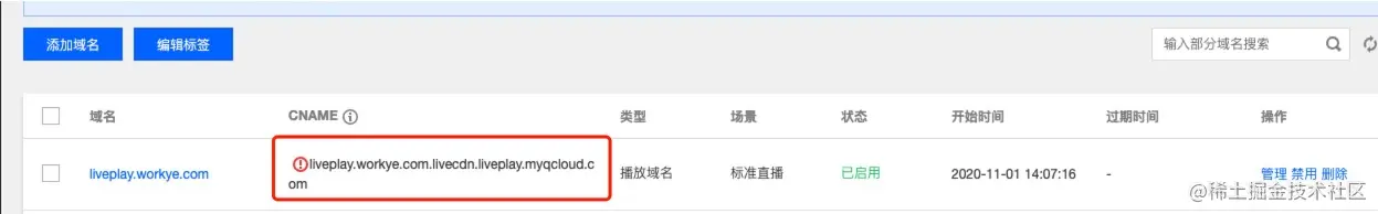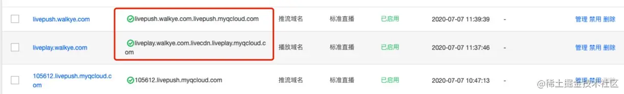 生效后你再进入腾讯直播的“域名管理”页面中,查看你绑定的域名状态