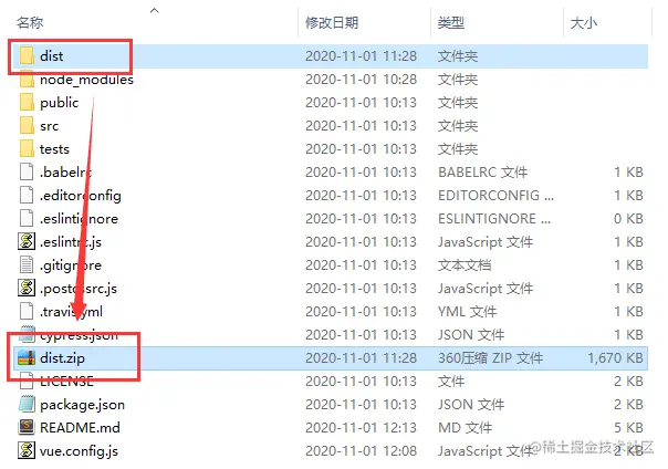 构建后,把dist目录打包: