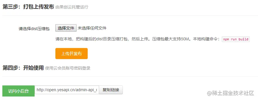 - 果创云托管运行:构建打包后上传到果创云,即可访问使用