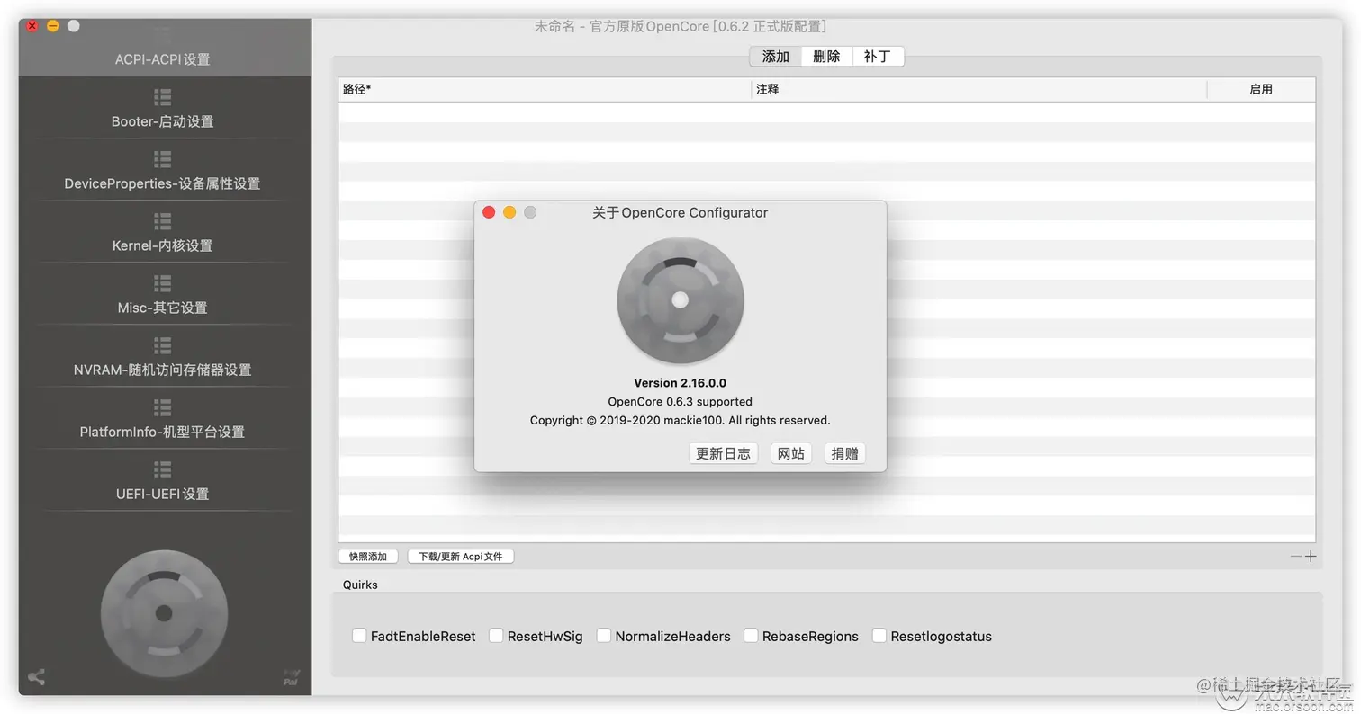 OpenCore Configurator 中文版是非常优秀的一款黑苹果OC配置工具,可以通过提供更加通用和模块化的系统来解决Clover带来的限制和问题,拦截内核加载以插入高级的rootkit,而该rootkit旨在替代Clover。OpenCore目前的主要用途是黑苹果系统引导,但其实它也支持其它操作系统。OpenCore目前引导相关功能已非常稳定,喜欢折腾的朋友现在已经是动手的时机了。