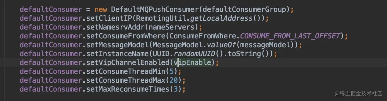 其中我们使用的是DefaultMQPushConsumer的时候,所以并不用关心OffsetStore的 事,使用PullConsumer,就要在客户端处理 OffsetStore。DefaultMQPushConsumer类里有个函数用来设置从哪儿开始消费: setConsumeFromWhere(ConsumeFromWhere.CONSUME_FROM_ FIRST_OFFSET),这个语句设置从最小的 Offset开始读取,通过发送指令可以完成对broker处消息拉取的offset更新。