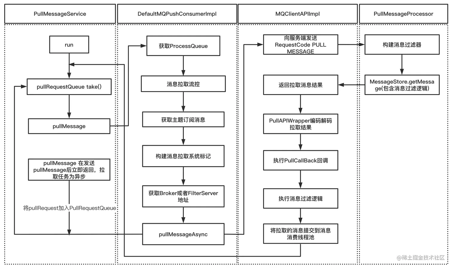 消息消费的整体流程如下所示: