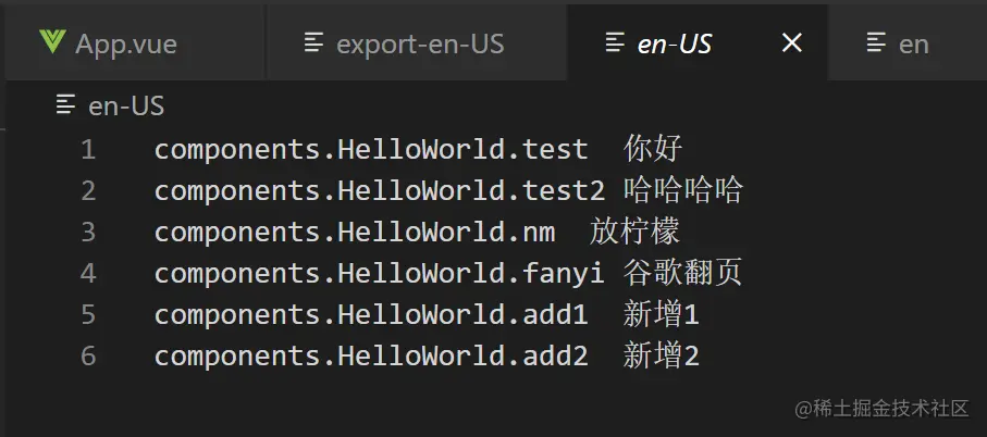 # 导出指定语言的文案,lang取值为配置中distLangs值,如en-US导出还未翻译成英文的中文文案