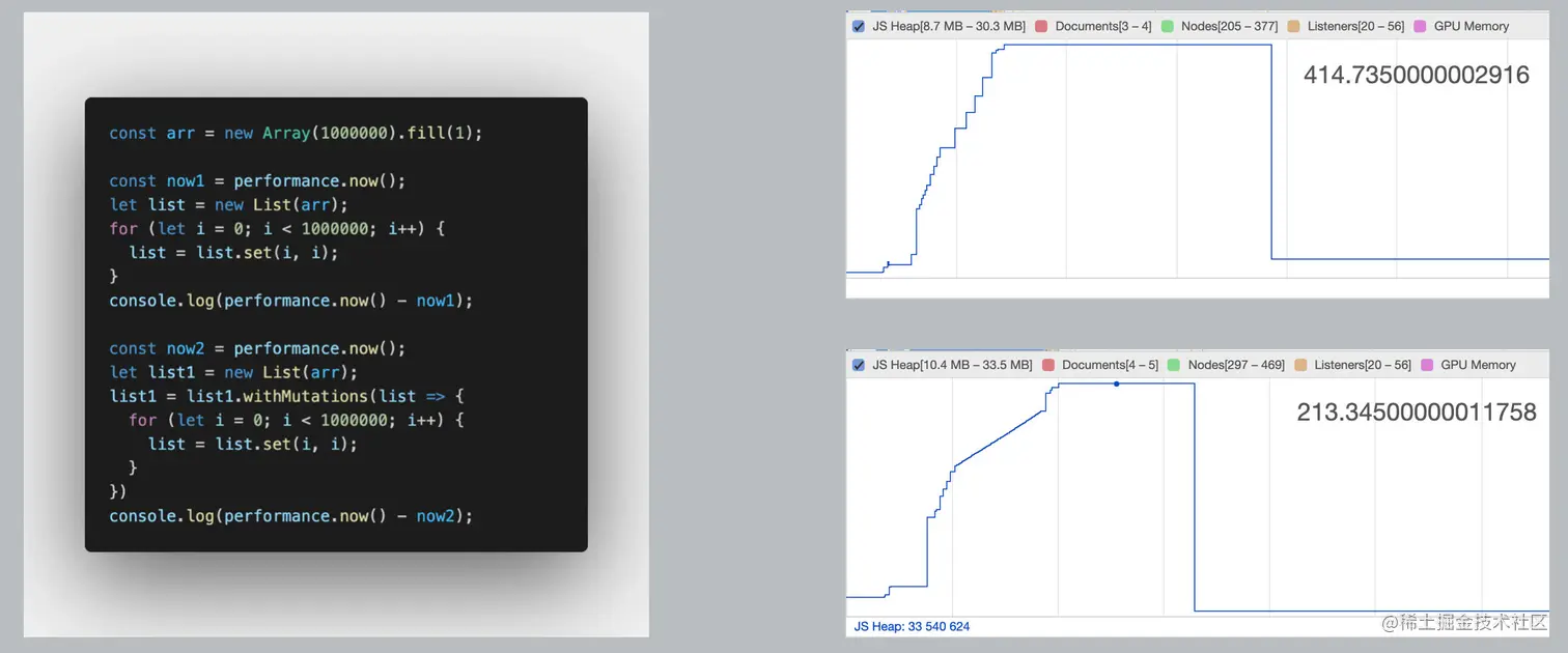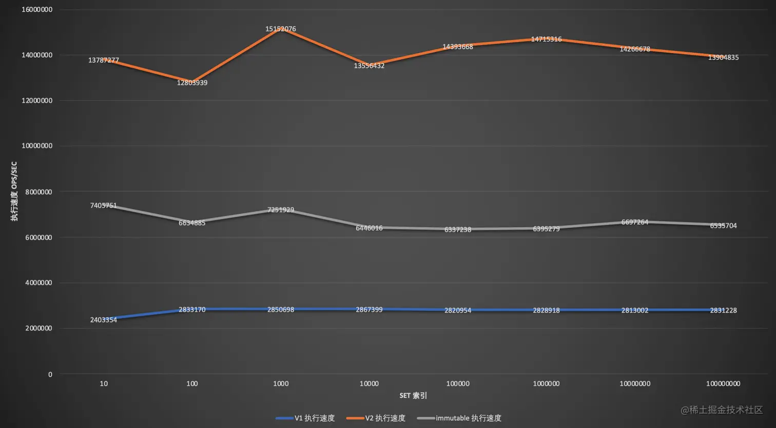 前者比较好理解,后者不太好理解,下一节会解释为什么 v2 版本比 Immutable.js 版本还要快一倍。